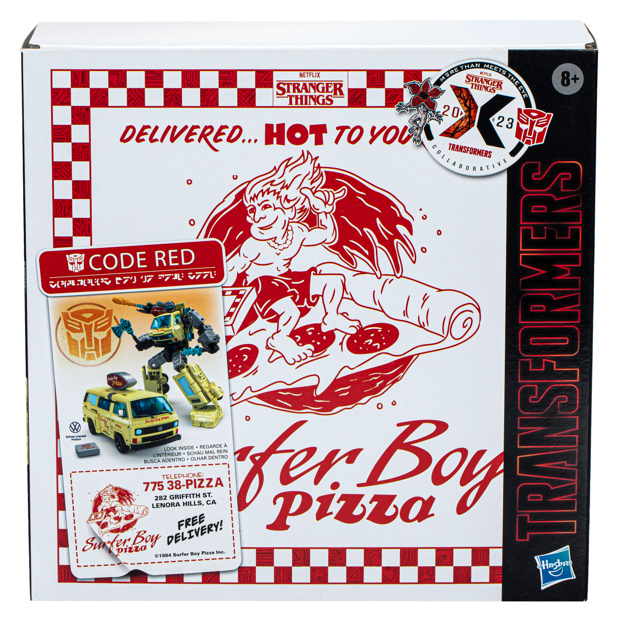 Netflixで配信中のドラマ『ストレンジャー・シングス 未知の世界』と「トランスフォーマー」のコラボ商品として「コードレッド」の画像が海外のファンサイトで公開されています。まだ公式では情報は公開されていないのですが、SDCC2023のタイミングで共有されたもののようです。「コードレッド」は『ストレンジャー・シングス 未知の世界』シーズン4に登場するピザ屋「サーファーボーイ・ピザ」のワゴン車からロボットに変形するもの。パッケージはピザの箱をイメージしたもので、付属品にもピザの箱があります。発売時期は2023年末で価格は44.99ドル。どこで販売されるかは今のところ明らかになっていません。